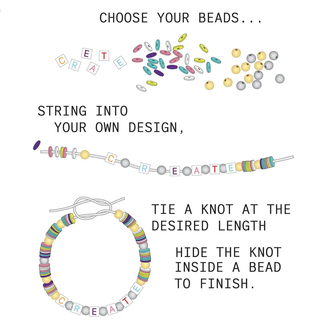 A fun and easy bracelet-making kit ideal for beginner crafters. Comes in a reusable glass jar with a cork lid, packed with vibrant, polymer beads and string for easy threading. Perfect for creative workshops, party favours, or gift sets.