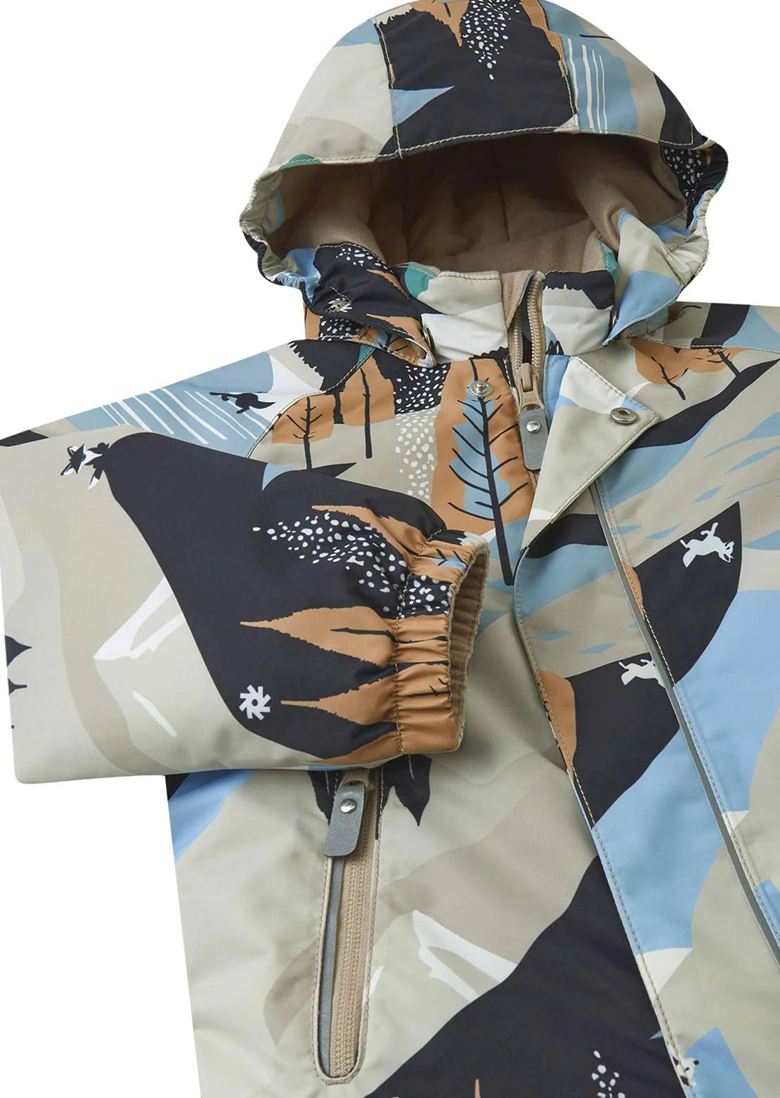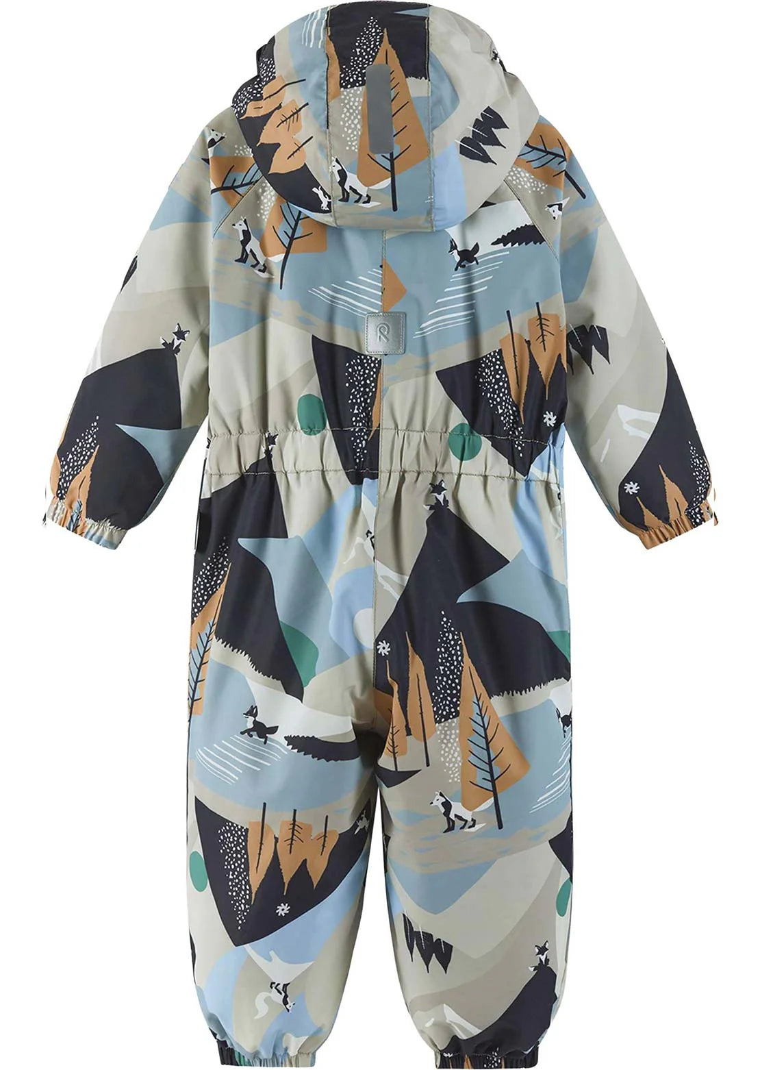 ReimaTec toddlers' lightweight snowsuit. Water- and windproof, so it's great for days out. Has an insulated seat and a long zipper.