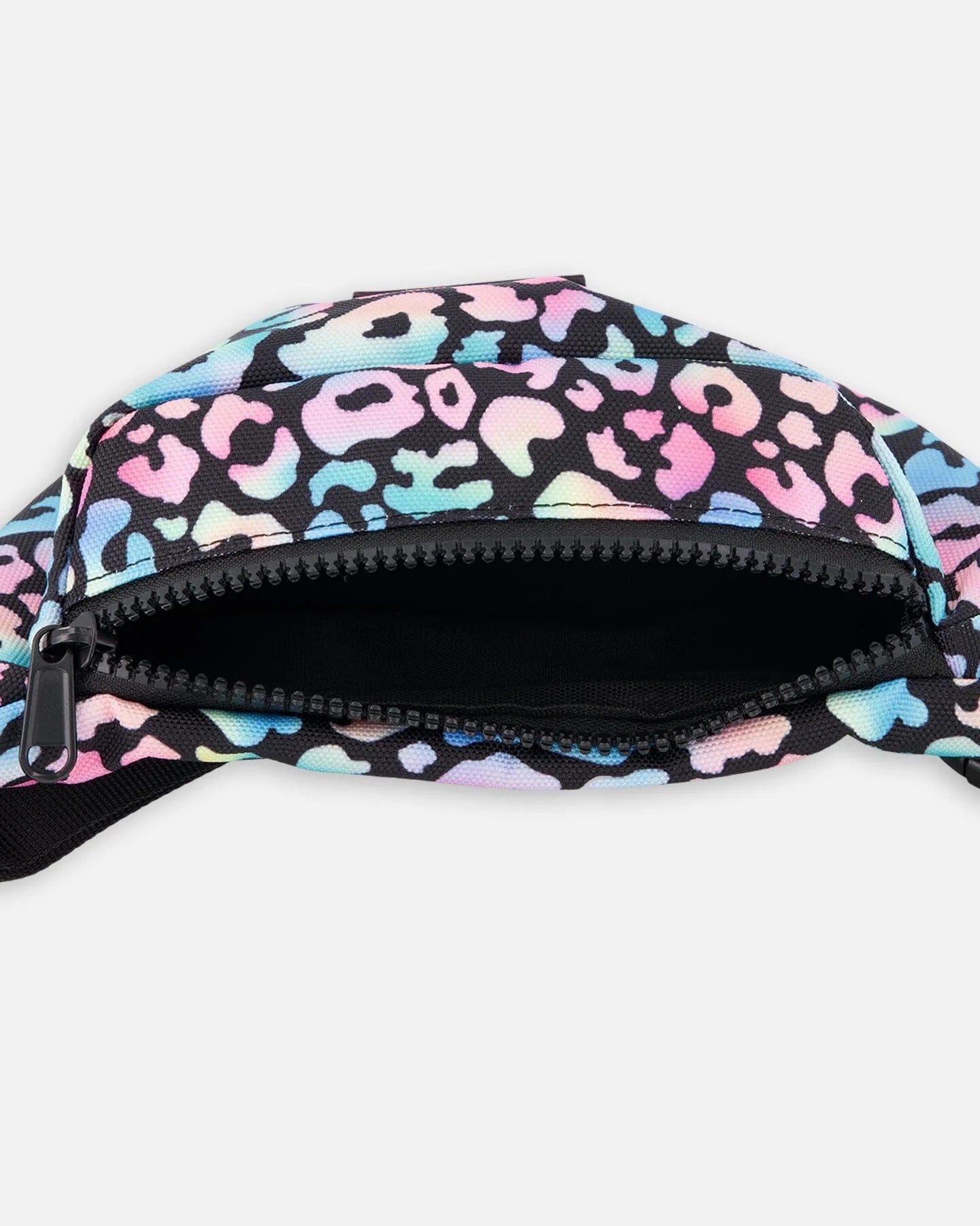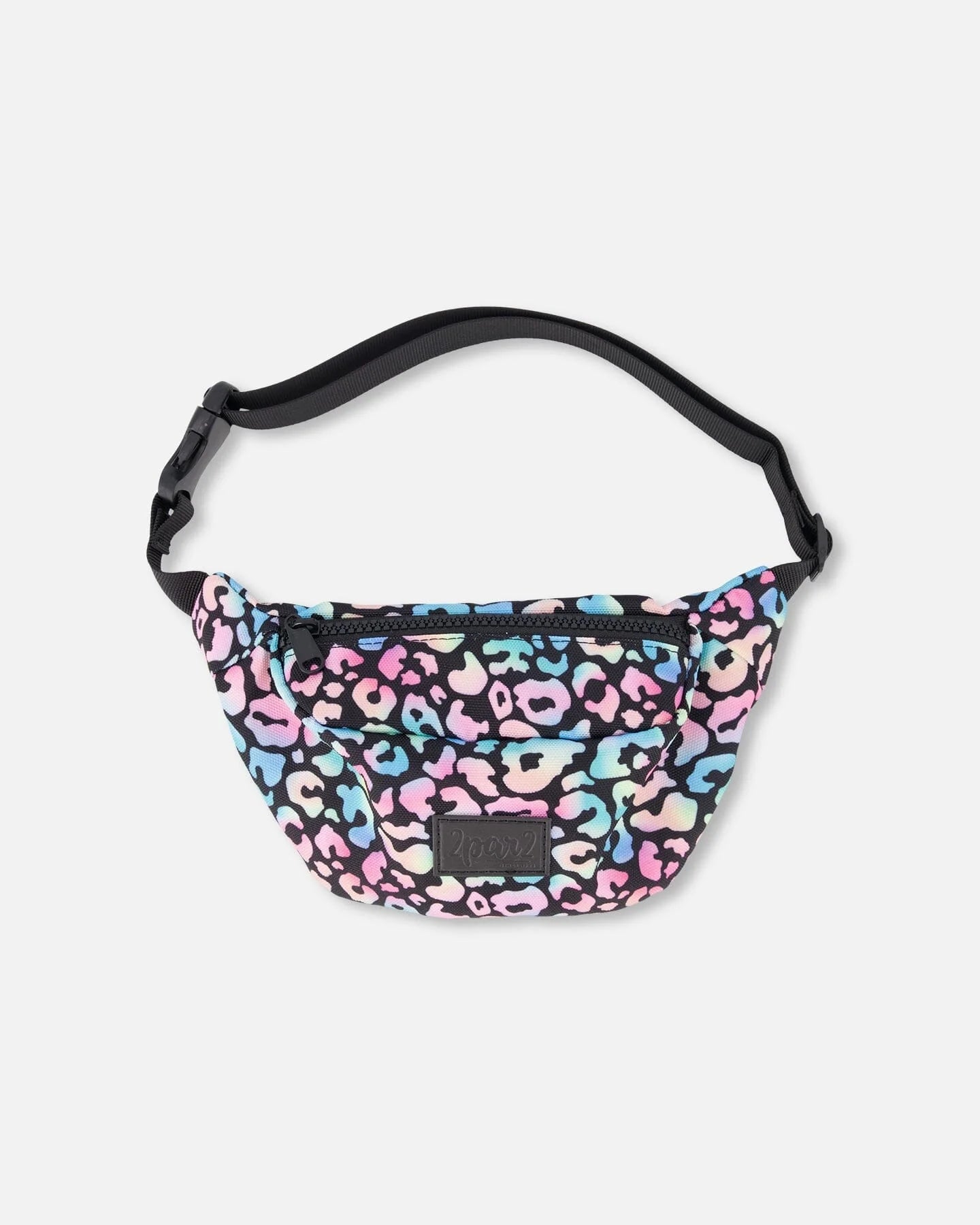 This fanny pack in black with animal print brings a playful wild twist to any outfit. Designed with an allover colourful leopard pattern, this accessory features an adjustable strap, a secure zip closure, and a “2par2” logo label at the front for a signature touch. Made from 100% polyester, it’s a lightweight and durable accessory for everyday adventures.