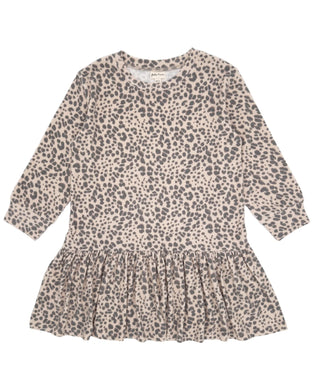 Minymo Girls Long Sleeve Ribbed Floral Dress - Sandshell