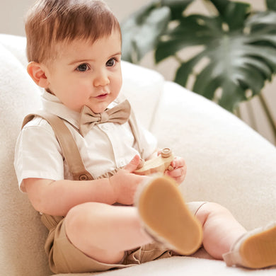 Petit Lem Firsts Baby Boys Poplin Shirt & Suspender Shorts Set with Bowtie