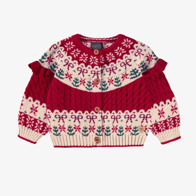 Souris Mini Baby Girls Festive Knit Cardigan - Red![]()  - Regular price