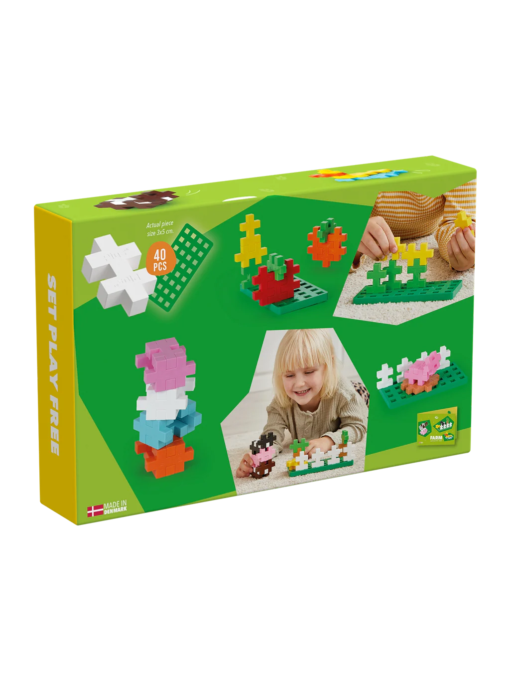 This Farm Building Set includes an inspiration book filled with fun and creative ideas for designing your own farm landscape. The set contains 40 Plus-Plus BIG pieces and a building base, perfect for constructing animals, fences, or other details that belong on the farm.