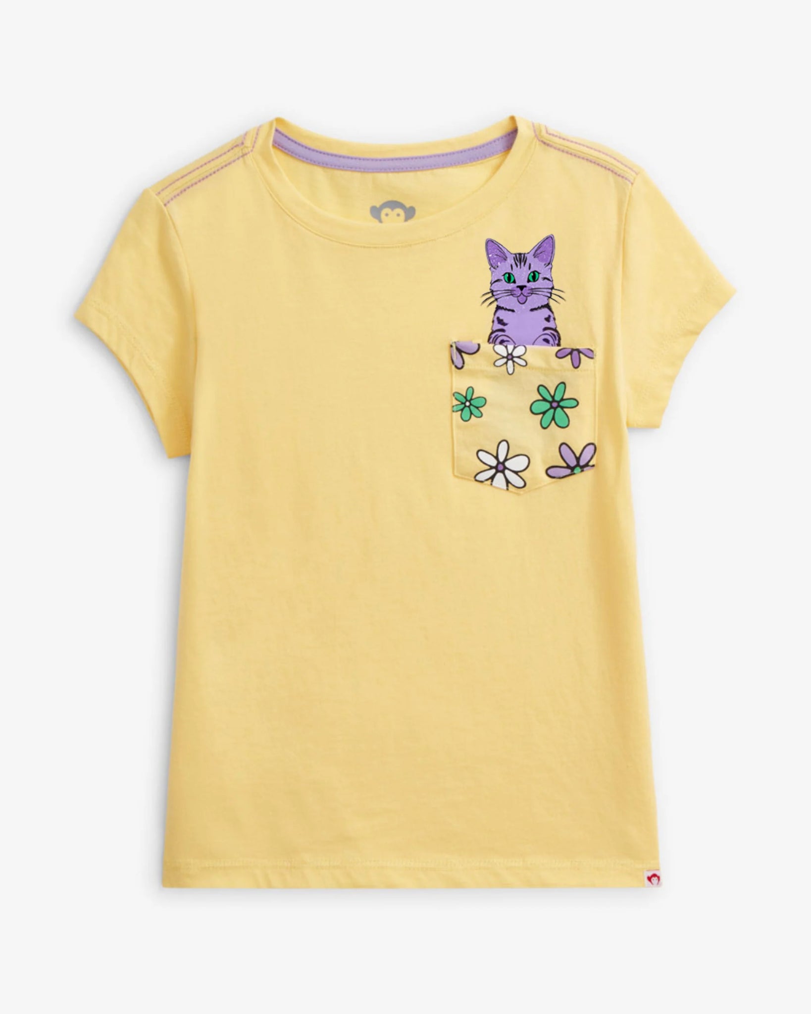 The Sunrise Kitty Graphic Pocket Tee brings instant personality to everyday outfits. Made from 100% cotton, this soft crewneck tee features short sleeves, a playful front graphic, and an easy pullover fit. Comfy enough for all day play and cute enough for weekend plans. A warm weather favorite parents and kids agree on.