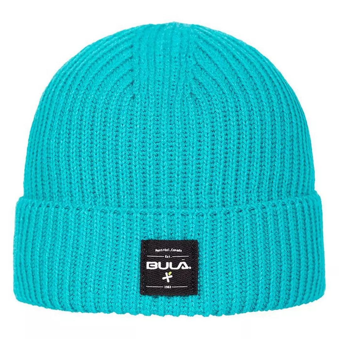 The Seaside Beanie from BULA is a knit winter hat with recycled polyester and acrylic yarns, warm Polartec® microfleece lining and a woven logo patch at the cuff.
