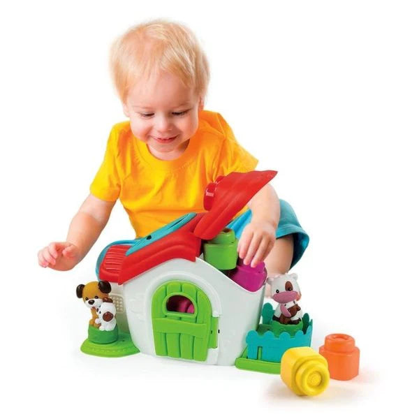- The sensorial farm contains lots of cuddly Clemmy blocks that can be stacked, squashed and easily slotted in through the windows and from the roof. A part of the roof can be opened for play and to get the blocks back.