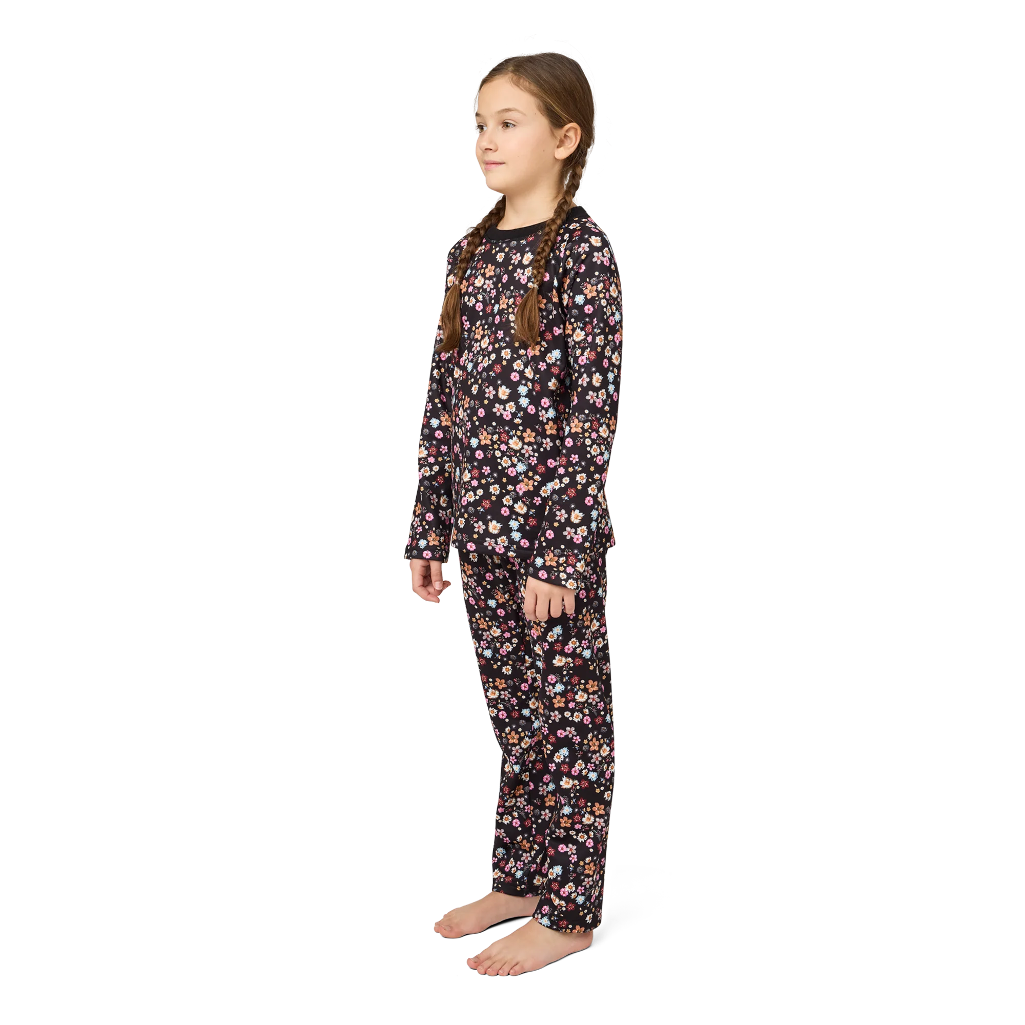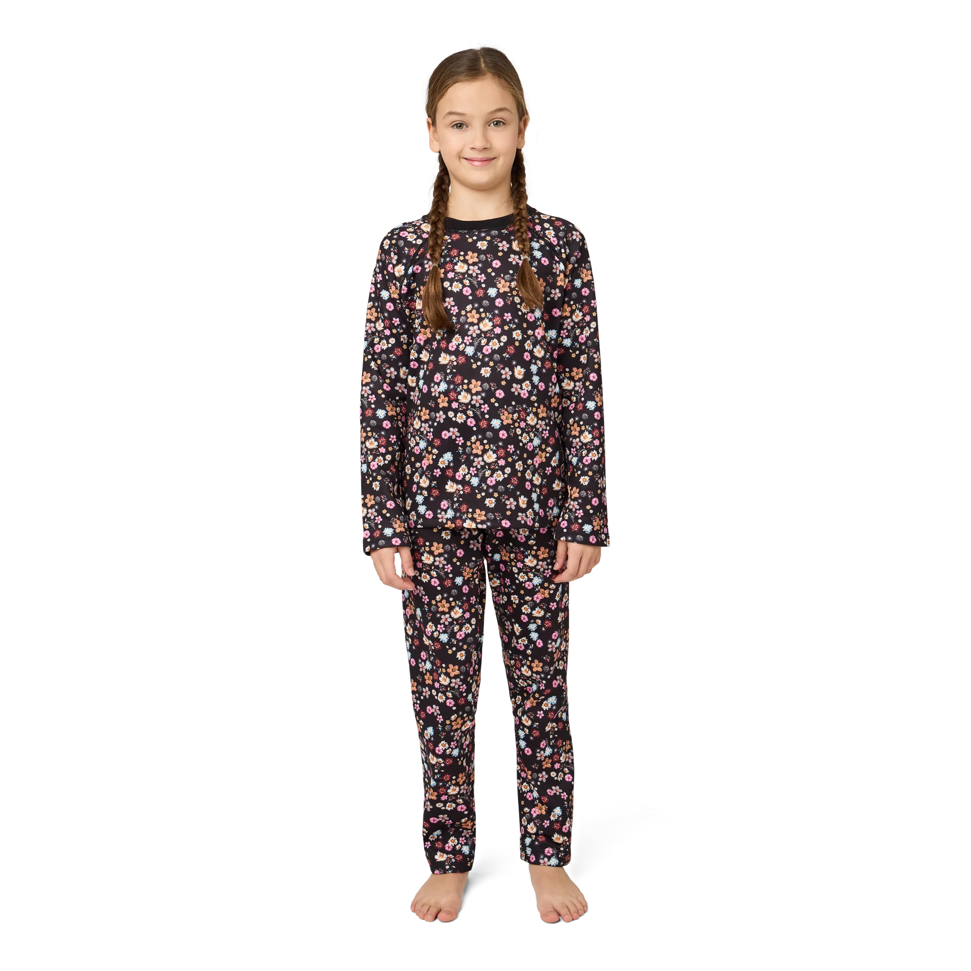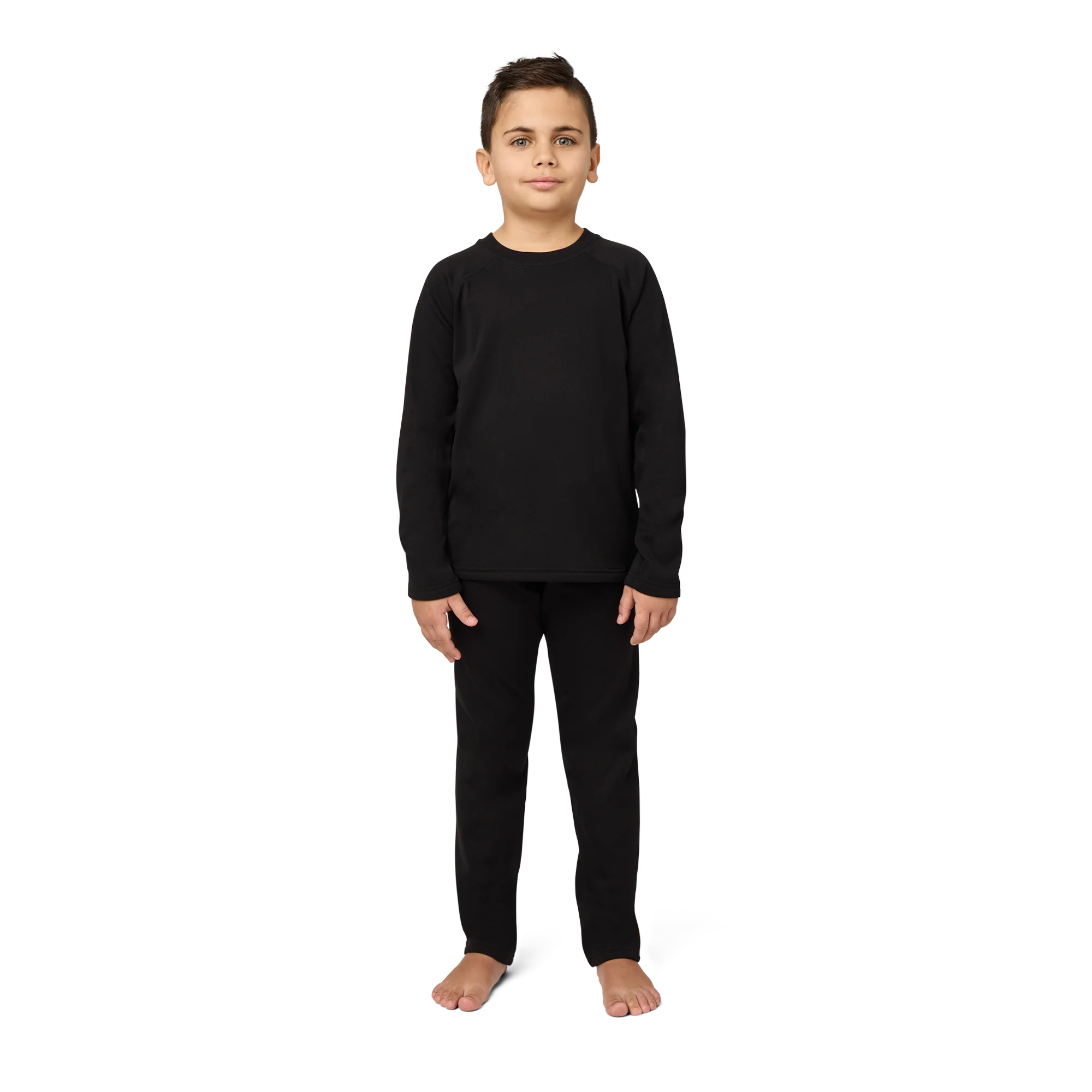 This juniors' fleece set delivers warmth, softness, and stretch in one cozy package. Made from heavyweight Velvet Fleece with plush against the skin, it features raglan sleeves, flatlock seams, and a covered elastic waistband. Whether it's for layering or lounging, this set is made to move—and made to love.
